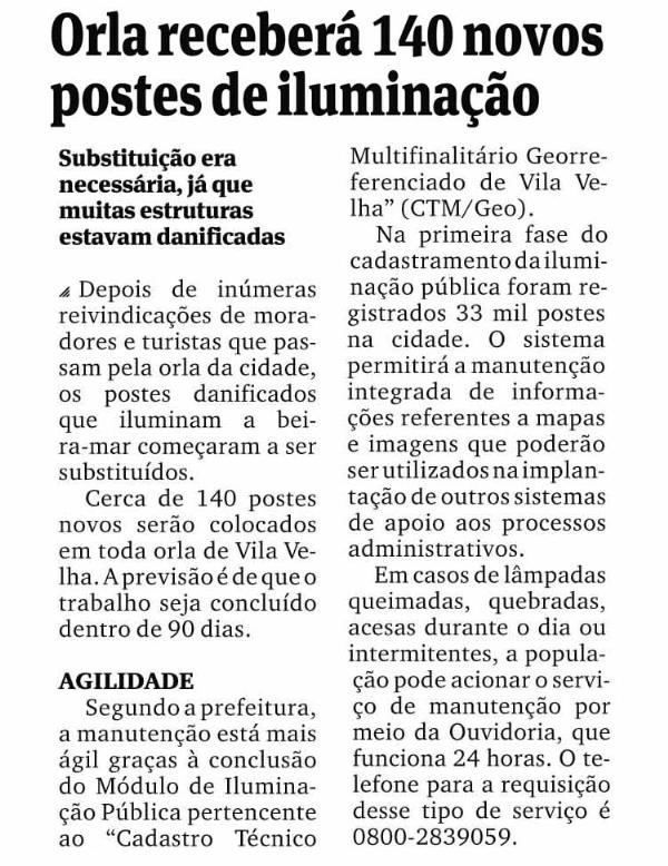 Fonte: Jornal A Gazeta - Caderno Vila Velha - domingo, 22/07/2012