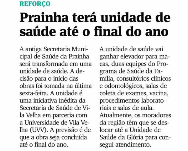 Fonte: Jornal A Gazeta - caderno Vila Velha - Domingo, 22/07/2012